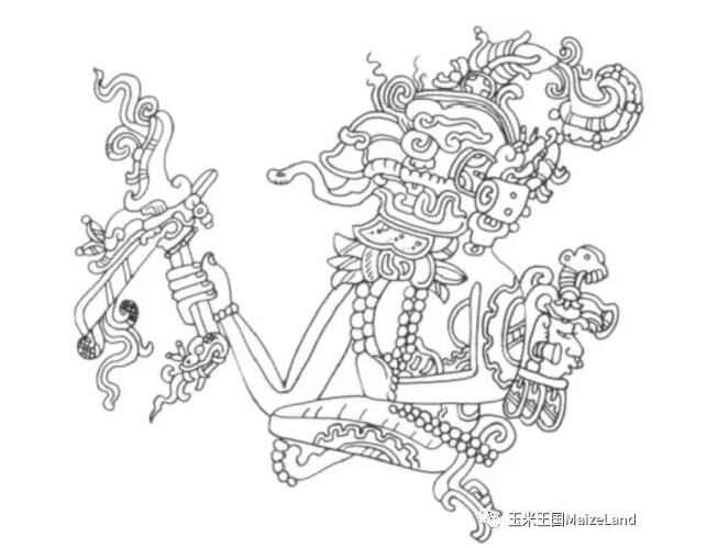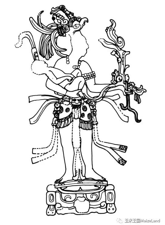 在致幻状态下与祖先和神灵交流,以至化身为神话中的诸神,重复创世纪和玉米神重生等英雄事迹,这是玛雅国王必备的技能。只有这样的重演,才能保证宇宙星辰顺利运行,万物复苏生长,王国平安富裕,完成王者肩负的责任,不负万民的崇敬。而这一切的前提就是获得卡威尔神的加持,激发出体内的神秘力量。因此,在玛雅世界里,卡威尔神是王权的象征。