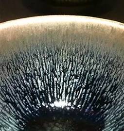 看斑纹如果要购买兔毫盏的话,可以依照宋徽宗提出的“盏色贵青黑,玉毫条达者为上”这一标准进行选购。而如果要购买油滴盏的话,最好是选购那些油滴斑纹清晰可见、斑点大小不一,盏内外斑点分布均匀饱满,且有些是独立的斑点,而不是斑点模糊一片的。