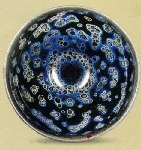 曜变盏与“油滴”一样,“曜变”一词亦来自日本。曜变建盏全世界共三只,均藏在日本,以静嘉堂所藏最为出名,被称为“碗中宇宙”。此外,日本大佛次郎的建盏也被认为具有近似的曜变釉色,称为“准曜变”。目前,在建窑窑址上尚未发现“曜变”残件。高清图赏