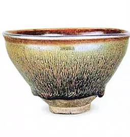 源自斗茶的盛行宋代人的喝茶方式称为点茶,即把茶碾碎了调成膏,取适量放在茶盏中注入沸水,有点像沏茶,但宋人是连茶带水一起喝。点茶时茶水上会沏出白沫儿,先散的为输,后散的为赢,这就是斗茶。皇帝钦点的茶盏据记载,北宋皇帝宋徽宗每年都会从进贡的建盏中挑得一两件,用以其所嗜好的斗茶。宋徽宗在《大观茶论》、书法家蔡襄在《茶录》里面均明确指出,建盏是最适合点茶和斗茶的茶器。在日本发扬光大宋代的斗茶和建盏传到日本,经过吸收发展被很好地流传了下来。优美而稀少的建盏长期以来是日本上层阶级珍藏的宝物,尤其在十五世纪达到高潮,被认为是无上神品,世上罕见之物。