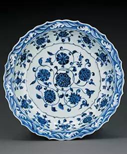 元青花瓷器的造型大器粗壮,小器玲珑,如元青花的盘类既有制作硕大、口径多达40〜50厘米者,也有制作颇为精巧的小器。这些大盘分布较广,不仅在国内,而且在国外如日本、美国、法国,尤其是伊朗、土耳其等伊斯兰国家更是数量较大,这些纹饰繁密、造型多样的大盘正是适应当地穆斯林生活而制作的外销瓷。这些瓷器多为平折沿,或花瓣形口,或圆形口,均具有成型规整、不变形特点,出土的元青花文物可证明。琢器底部多露胎