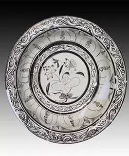 釉质浓厚。有的出现油滴或兔毫等结晶现象。有的内为白釉,外施黑釉且满釉芒口为覆烧,制作精美,类似黑定。天目瓷盘与白瓷盘造型基本相同,只是口边直削,腹壁直向内收,盘心浅坦,里外施半截釉。有的内心呈星角型。罐:多有盖,平沿,直削边,小口,凸心,起两周弦纹。盖顶有长方形桥纽,满施黑色亮釉,里部露胎。另一盖罐未凸起弦纹,纽为圆球式,上圆下尖,镶入盖内,制作颇为新颖。罐多为双系,罐身突起线筋三两一组。3白釉瓷