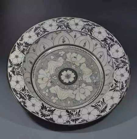 扒村窑产品的主要特征是:胎质粗松,无论是白釉、绿釉、黄釉或白地绘黑花、宋三彩、宋加彩等。釉下均施有一层白色的化妆土。该窑烧制的白地黑花瓷构图比较严谨。2黑如漆