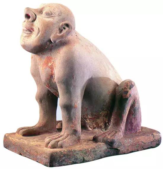 上图这件镇墓兽,出自西魏时期,1977年出土于陕西省汉中市崔家营,高37厘米,现藏于陕西历史博物馆。这件镇墓兽有着人的面孔,狮子的身躯,造型上的独特表征,与相隔甚远的埃及金字塔前的狮身人面像有着某些相似之处。从神话学角度上看,动物崇拜一般是史前社会的伴生物,而人兽同体阶段大致在原始社会及奴隶社会早期,诸神的形象多为人首兽身或兽首人身。埃及的狮身人面像正是这个时期的产物。而中国的情况则不同,很难准确说什么时候进入人兽同体阶段,镇墓兽则可看做是人兽合体阶段的产物,它表明了一种逐步由兽向人形演变的过程,同人类文明发展规律是一致的。从这个意义上来说,中国的镇墓兽与埃及的狮身人面像虽相隔万里,却有着内在的共通性。