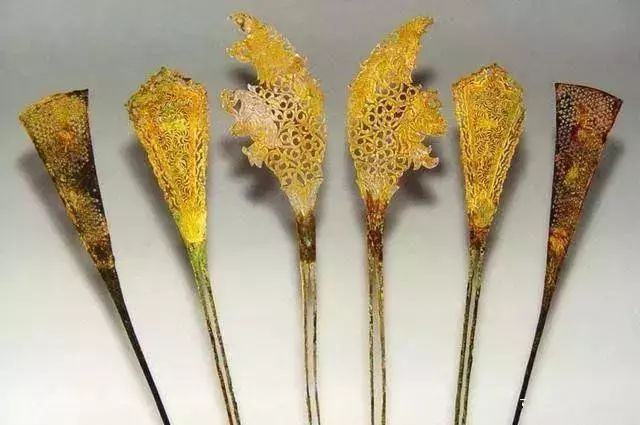 到了唐中后期,首饰花样就多了起来,各种钗啊步摇啊翠翘啊金玉饰品数不胜数。曹邺有诗:“长安高盖多,健马东西街。尽说蒿簪古,将钱买金钗。”正是描绘了小姐姐嫌弃簪子样式过时,想要购买金钗的愿望,也可从侧面看出当时城市中商业的繁盛。
