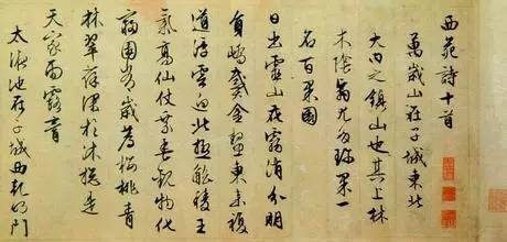 《西苑诗》文徵明行草书的代表作之一,是年文徵明已85岁。书法苍劲流畅,风姿端整秀雅。