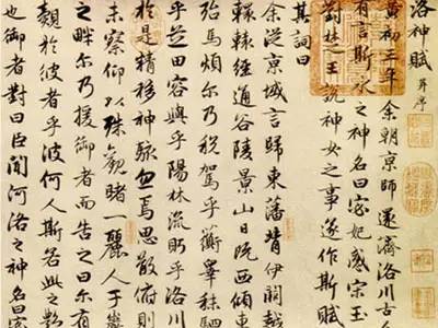 《洛神赋》即为赵氏行书代表作。行中兼楷的结体、点画,深得二王遗意。