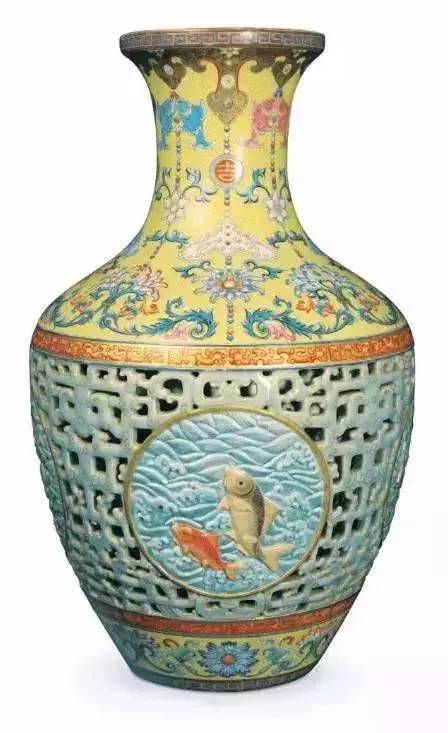 第一名:清乾隆粉彩镂空“吉庆有余”转心瓶