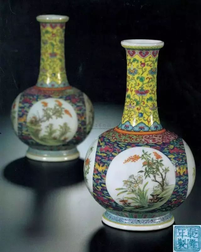 第五名:清乾隆浅黄地洋彩锦上添花万寿连延图长颈葫芦瓶