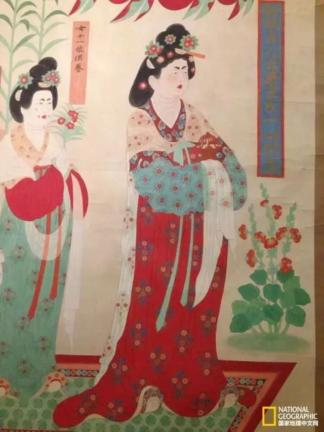 据记载,玄宗开元年间,诏令后宫二十七世妇和宝林、御女、良人等等,在参加后廷宴会时,披有图案的披帛。帔,从巾,皮声。古代女性披在肩背上的服饰。帔,也称帔子。
