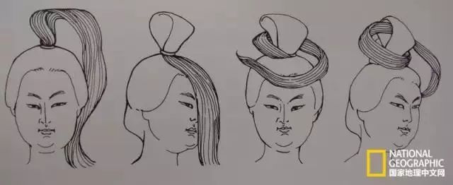 唐代妇女的发式造型之多,名称之美是前代所未有,如乐游髻、归顺髻、百合髻、愁来髻、盘恒髻、惊鹄髻、抛家髻、长乐髻、坠马髻、闹扫妆髻、半翻髻等。
