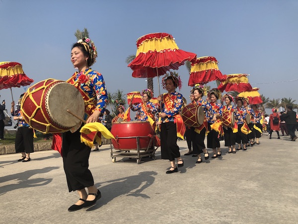 正月29日,泉州东海蟳埔村“妈祖天香巡境”活动。盛装的蟳埔女们手执华盖,翩翩起舞。