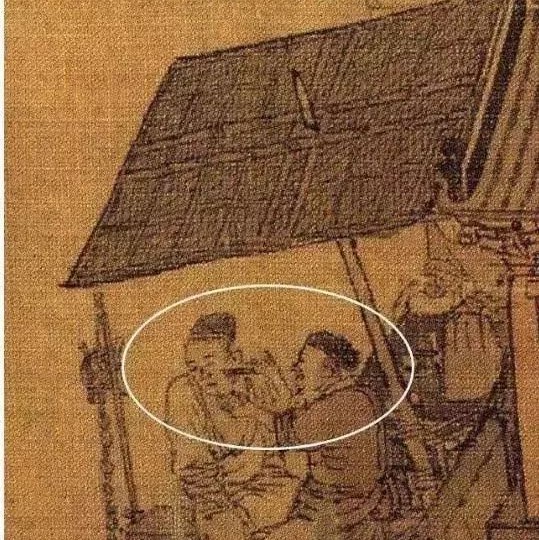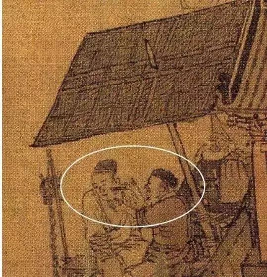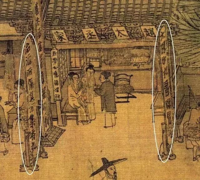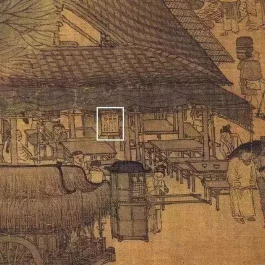 现在去一些比较小的饭馆里吃饭时,大家可能会注意到,菜单都是在墙上的,简单方便。下图中的茶肆中小编圈出来的竖幅小帘子,据研究者称,它可能是世界上最早的菜单。