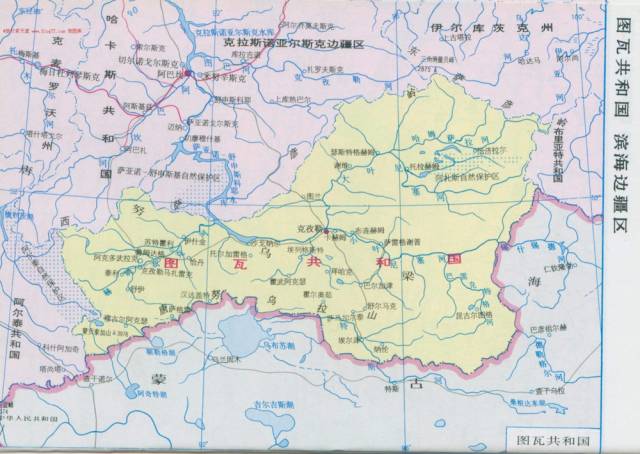 在这里有一块地方是世界自然遗产。大家记得,普京在上一个总统任期时,曾经连续两年到那里过生日,有一次骑着马,有一次把自己的手表送给了一个牧民的儿子,就是这个地方。但这个地方,到现在为止中国政府没有办法表态,承认他就太便宜了,不承认现在也没有边界于是也没有办法。现在好多人已经都不知道唐努乌梁海这一回事存在了。地图上可见,它就在外蒙古的外面。