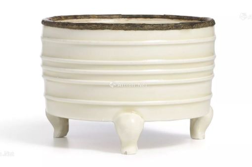 北宋 定窑白釉扣口弦纹三足奁式炉