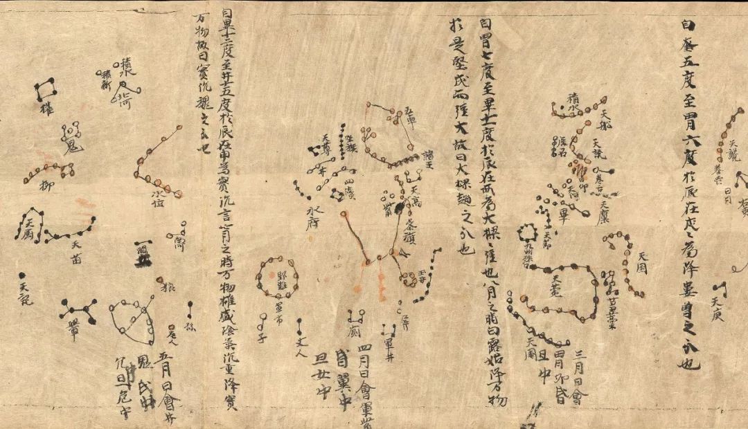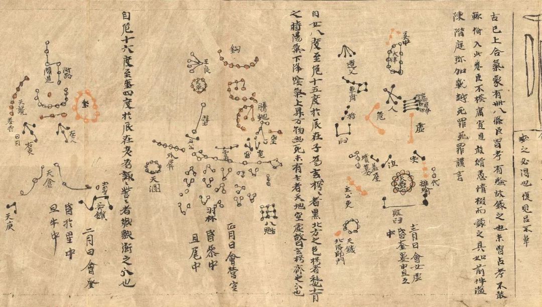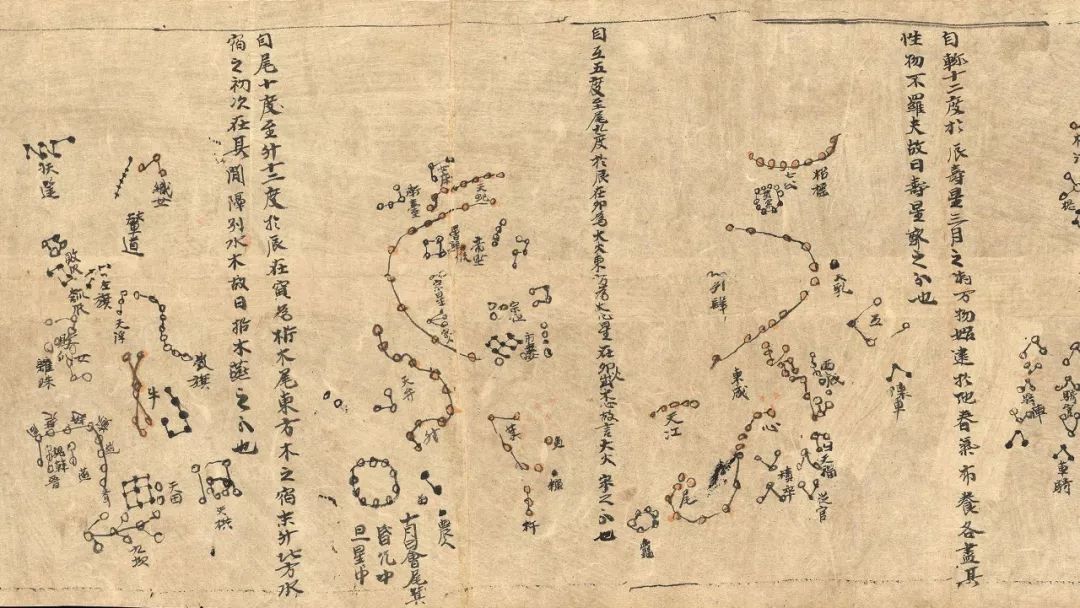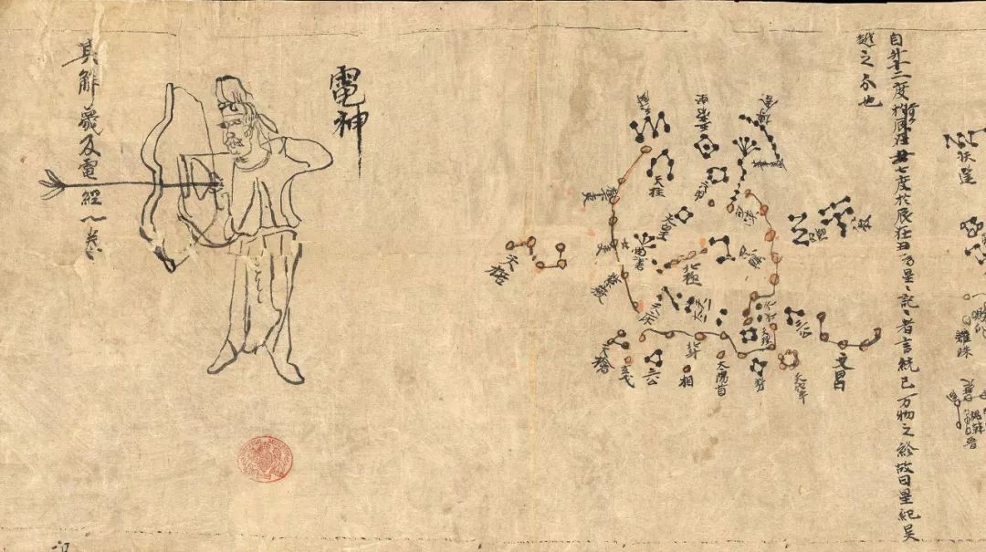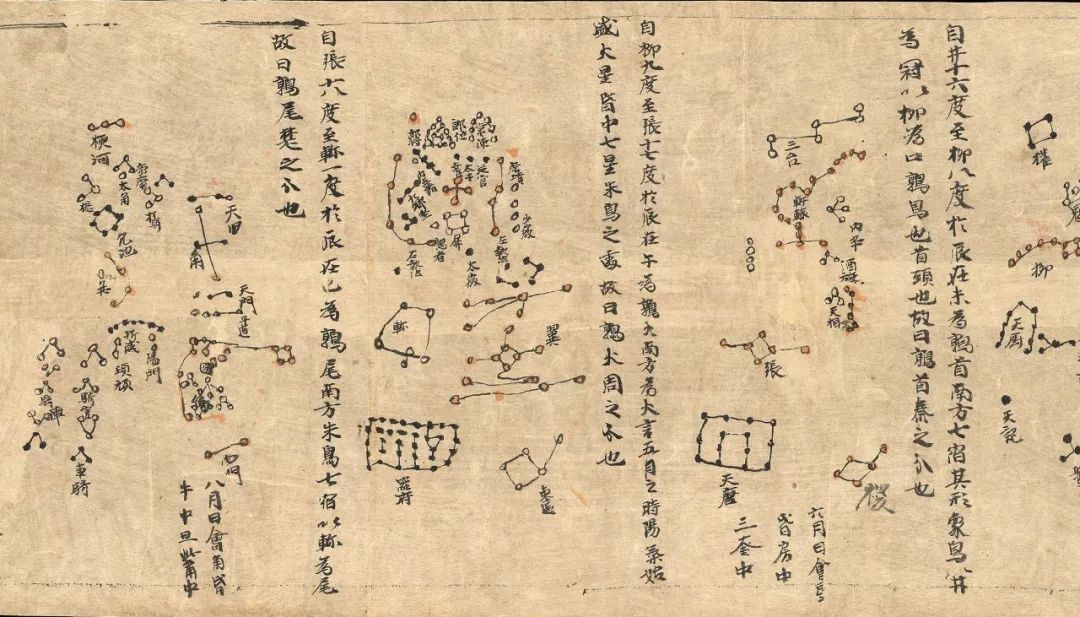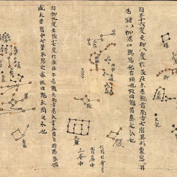 摘要: 敦煌星图,又称《敦煌星图甲本》(以与现存敦煌博物馆的另一较小星图即敦煌星图乙本相区分),斯坦因编号为S.3326。敦煌星图是中国天文学史上最著名的星图之一,绘制于唐中宗时期(公元705-710年)。敦煌星图是敦煌经卷的一部分,绘制了当时对恒星的观测。敦煌星图是迄今为止存留的最古老的星图。 此卷子前为《气象杂占》,后为《解梦及电经一卷》,星图居中。绘制者用不同的颜色区分了甘、石、巫三家星官。《敦煌