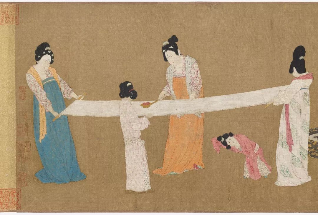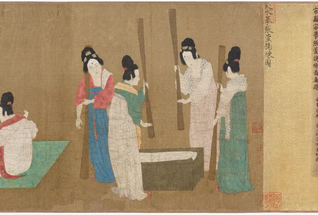 摘要: 《捣练图》是唐代画家张萱的作品。这幅长卷式的画卷上共刻画了十二个人物形象,按劳动工序分成捣练、织线、熨烫三组场面,系唐代仕女画中取材较为别致的作品。张萱原作已不复存在,此为宋徽宗摹本,后有清代学者高士奇跋,此卷现藏于美国波士顿美术馆。“捣练”是古代女性最常见的劳作之一,又称“捣衣”,是古代制作衣服的重要工序之一。“练”是一种生丝制成的丝帛织品,刚刚织成时质地坚硬且发黄,必须经过沸水煮泡和漂白,再用