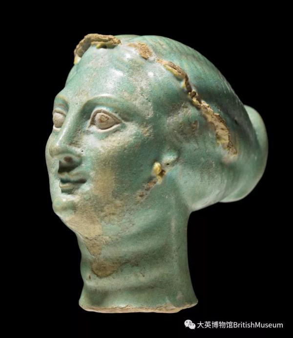 阿尔西诺伊二世头像,釉砂鎏金,埃及纳夫克拉蒂斯, 公元前3世纪
