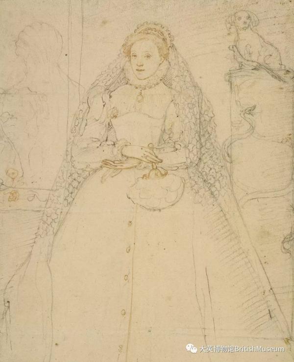 《伊丽莎白一世肖像》(细部),费德里科·祖卡里(约1542–1609年),黑色、红色粉笔,1575年