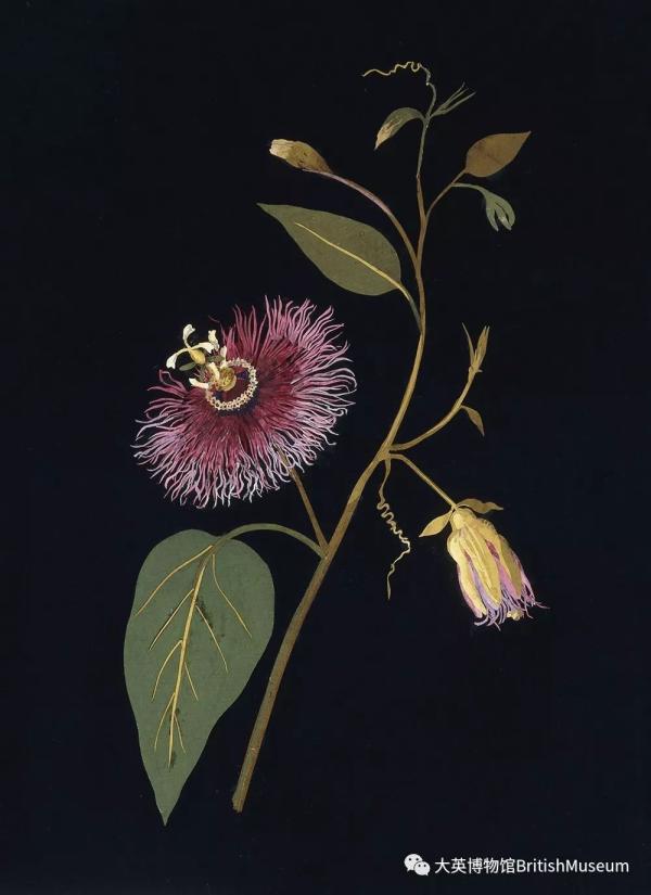 玛丽·德拉尼(1700–1788),《樟叶西番莲》,拼贴画,彩纸,水彩染色, 1777年