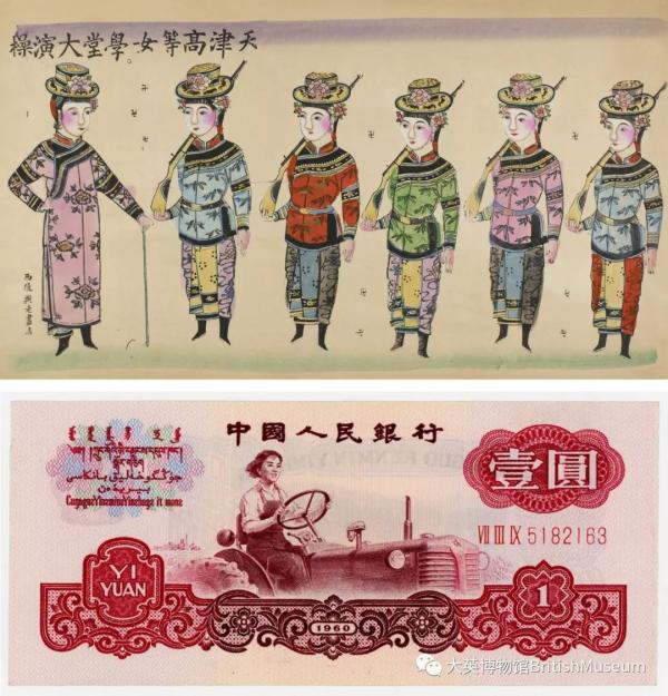 1960年版的一元纸币上则绘有以新中国第一位女拖拉机手——梁军为原型的女性形象。女拖拉机手健康强壮,与传统的仕女形象截然相反。她身穿白衬衫,表明了她的工人阶级和无产阶级的身份,驾驶着拖拉机也寓意女性获得解放,奔向自由。