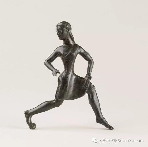 斯巴达人相信只有强壮的母亲才能养育出优秀的战士,因此,女性参加竞技体育备受鼓励。虽然当时女性不被允许参加奥林匹克运动会,但她们有自己的专属比赛——Heraia,一项以希腊女神赫拉命名的跑步赛事。这座铜像原本应为青铜器皿口沿处的装饰,塑造了一位参加比赛的女孩形象——她脚步坚实有力、大步向前,同时回头观察着身后对手的情况。