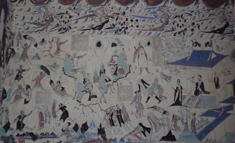 官府对这些不臣之民非常痛恨,剥去他们的衣服,施以酷刑,剜去双眼。这既是对他们犯下了大罪的惩罚,同时也是为了让更多的人引以为戒。画面中五百战俘被押上了刑场,他们个个身体半裸、发髻披散、遍体伤痕,跪在行刑台上。刽子手们凶神恶煞,手持尖刀利刃开始行刑。顿时,鲜血四溅,惨叫声不断,使观者丧胆,闻者心惊。几个时辰之后,五百强盗变成了五百盲人。但是,惩罚并没有到此为止,行罚之后,他们又被放逐到远离村镇、荒无人迹的深山野林。这里野兽出没,荆棘遍地,衣食无着,栖身无处。面对这样的遭遇,他们的悲愤绝望难以自抑,狂奔乱跳,发出撕裂人心的悲嚎。