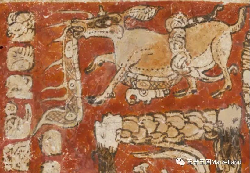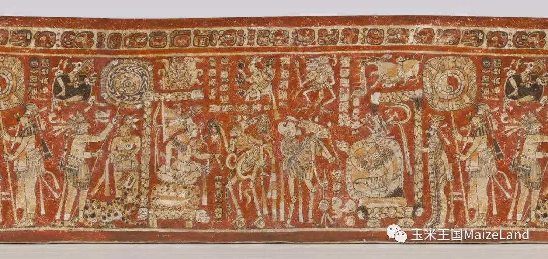 这是展品中最精美的彩绘陶杯之一,生动描绘了玉米神在冥界大获全胜的场面。