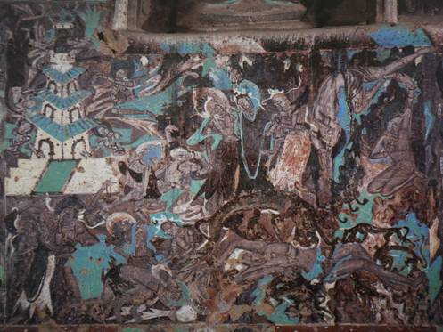 佛教故事画[舍身饲虎]绘于窟内南壁,它以精密独特的构图传达出镇定坚毅的情感,吸引着无数艺术家为之倾倒,堪称人类艺术的瑰宝。