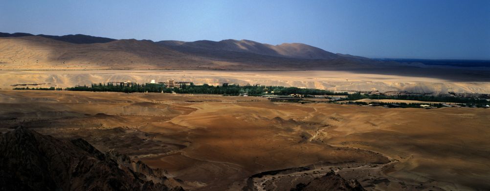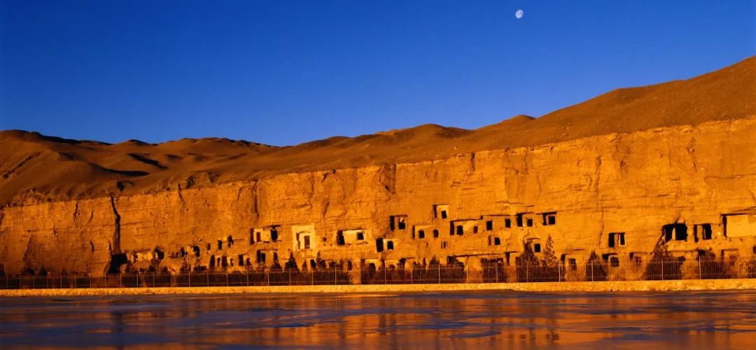 在公元366年的时候,有一个和尚叫乐僔,他从中原云游到了现在敦煌鸣沙山的东麓,他往东一看,金光万道,他一想这是个好地方,他所在背后是个鸣沙山,鸣沙山对面是三危山。两山之间有一条河流叫宕泉,这个地方就形成了一个绿洲,又有山又有水,在这样优美的环境中间,我如果在这儿修行参禅肯定很好,所以他就在这开了第一个洞。后来第二个和尚叫法良,也过来了,正因为这两个和尚来开了两个洞,从此以后年年开窟,开了1000年。