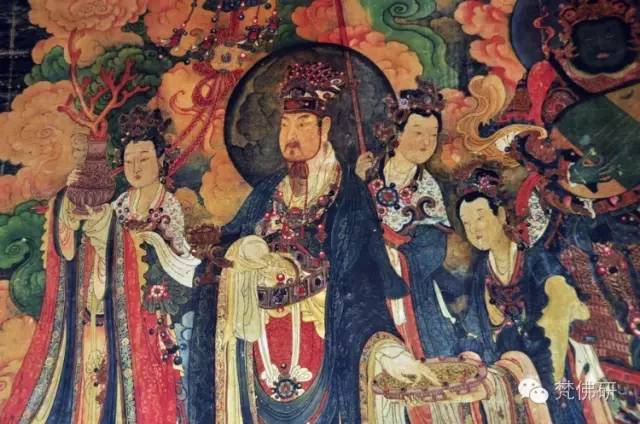 (明代法海寺壁画梵天礼佛图,唯有手中莲花约略可标明其身份)