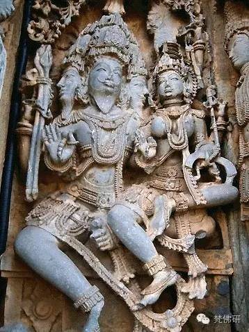 (梵天与辩才天女,曷萨拉王朝哈勒比德寺庙群,约12至13世纪,卡纳塔克邦)