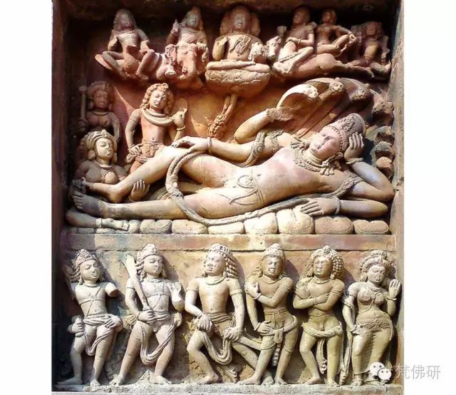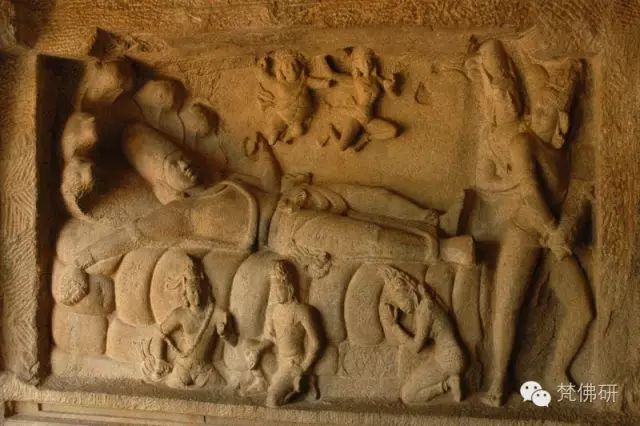 (毗湿奴躺在蛇床上,泰米尔纳德邦大力城,7-8世纪帕拉瓦王朝神庙群)