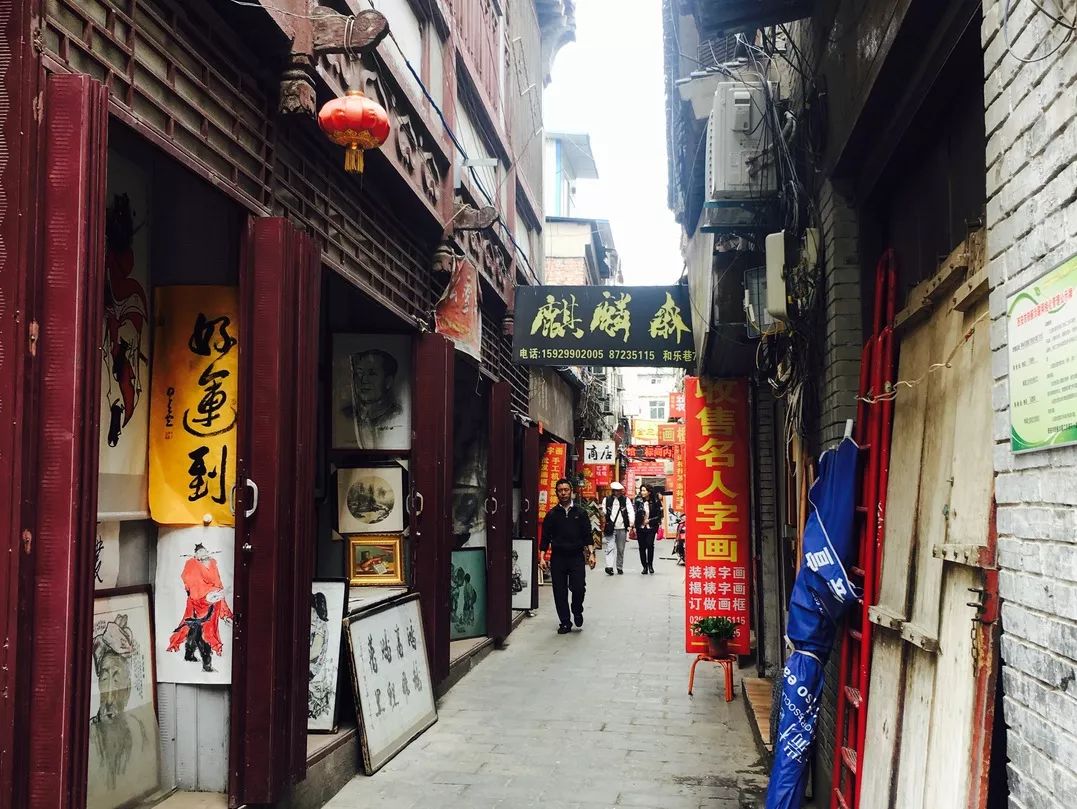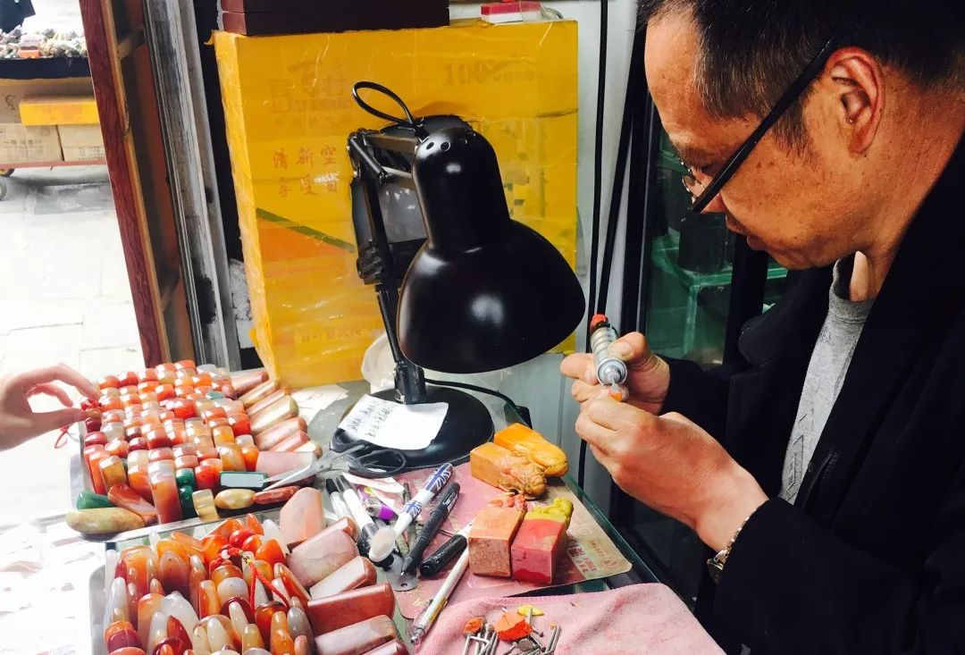 街道的路边,有很多卖笔墨纸砚,书画用具的店铺,这些琳琅满目的“文具”都与这条街的名字呼应着。春夏的午后,还能看到在躺椅上午休的老人一下下摆着蒲扇。店门口坐着刻章的老人,游玩的旅客挑块好看的石头,就能刻字做成印章挂饰。步行街的距离并不长,可以漫步其中,感受这片老街区的历史人文与烟火气息。