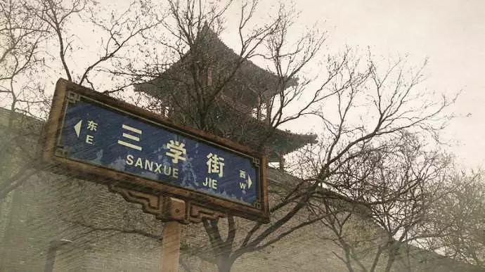 路尽头右转没几步,就能看到三学街。三学街,是西安著名的、以文化为标志的老街区之一,千百年来,三学街一直保存历史风貌,传承传统文脉。这个当年大唐皇城太庙坐落的区域,至明成化年间,西安府学、咸宁县学和长安县学相继落成,围绕祭祀孔子的文庙形成了“一庙三学”的格局,三学街正因此而得名。