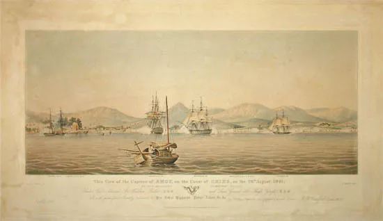 1841年8月26日,英军“复仇女神”号等30艘舰船,载运3500名英军进攻厦门。鼓浪屿和厦门岛南岸的炮台阵地相继沦陷。