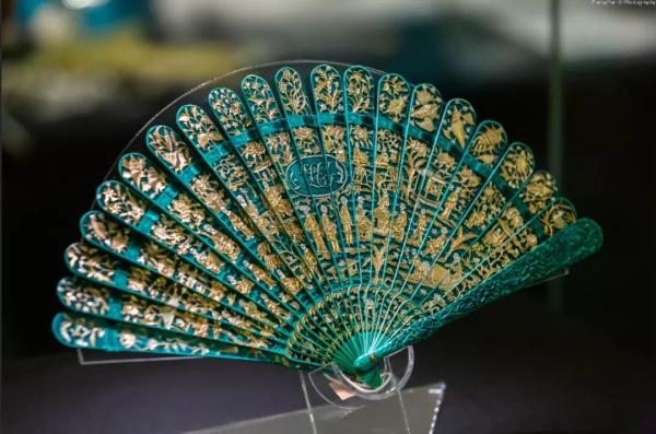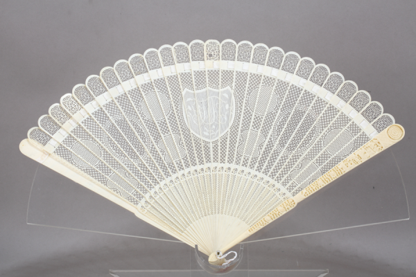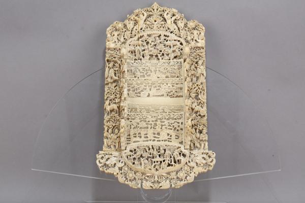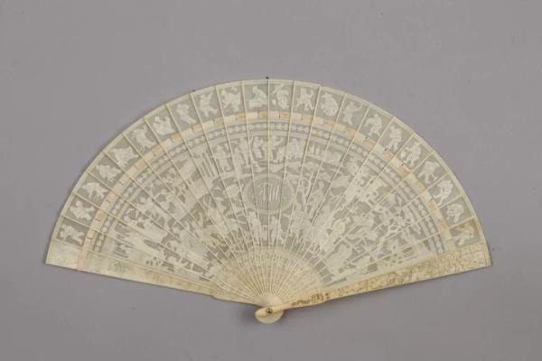 象牙劈丝透雕人物徽章纹折扇 清 东莞市博物馆藏