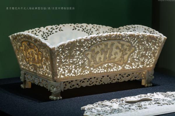 本次展览用一批种类丰富的外销牙雕艺术品,描绘出一幅“东风西渐”的艳丽画卷。