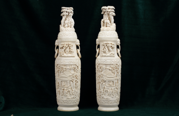 象牙浮雕人物瓶 清 东莞市博物馆藏