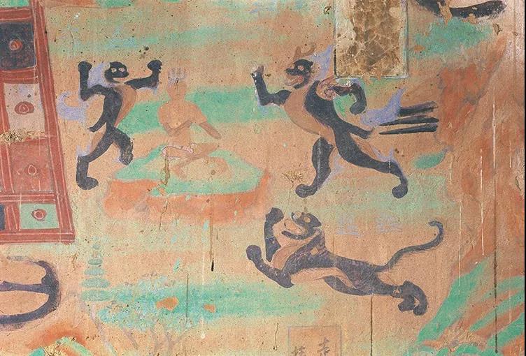 狮子是敦煌壁画中最早出现的动物形象之一,早在北凉时期的莫高窟第272、275窟中,便有描绘,此后未曾断绝。