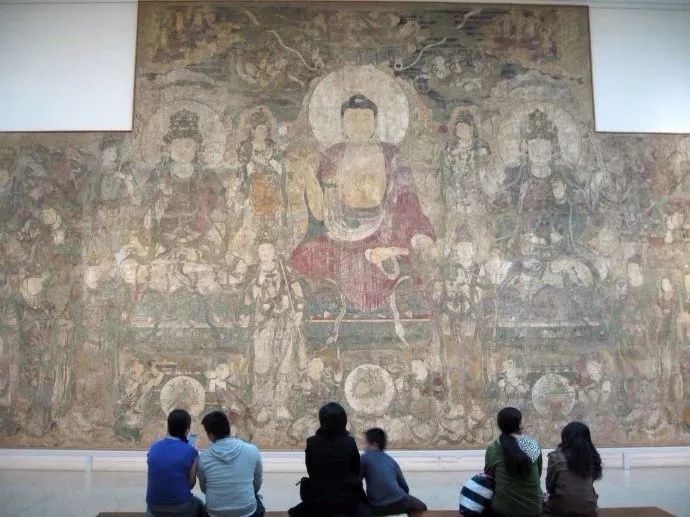 进入美国大都会艺术博物馆最大的“赛克勒”展厅,首入眼帘的是巨幅的中国元代壁画《药师经变图》,它的“老家”是中国山西洪洞广胜寺,画中端坐着药师佛,十二神将陪伴左右,表现了药师如来及其随从所在的东方佛教净土的盛况。