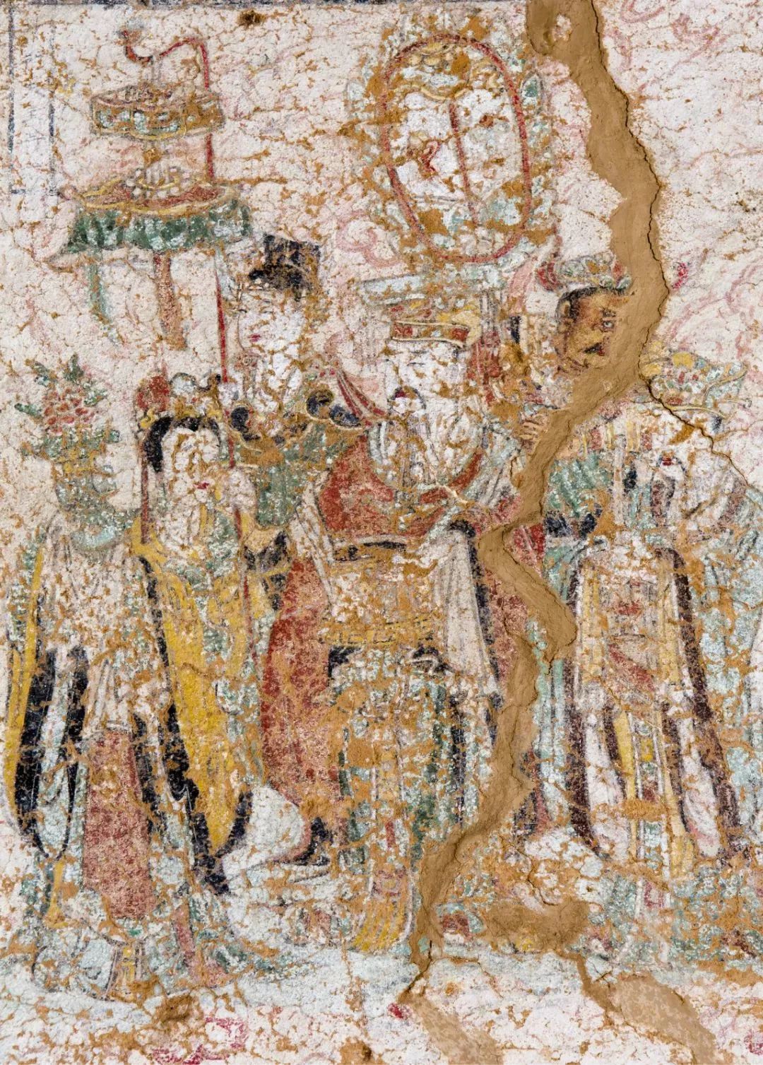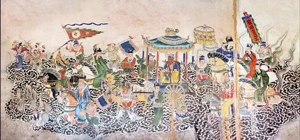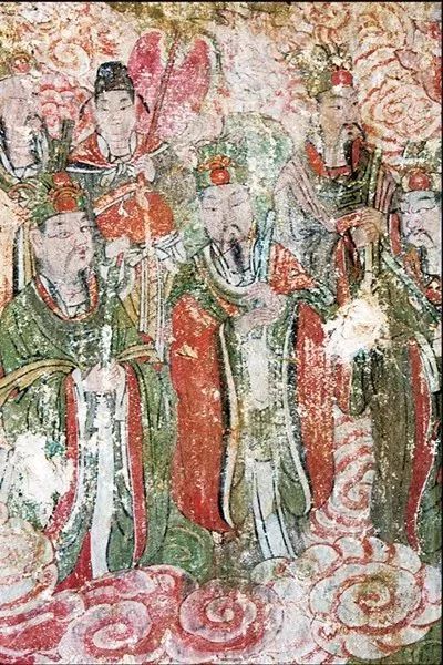 ▲图为玉清元始天尊、上清灵宝天尊诸神屯留县姬村宝峰寺(元代)壁画