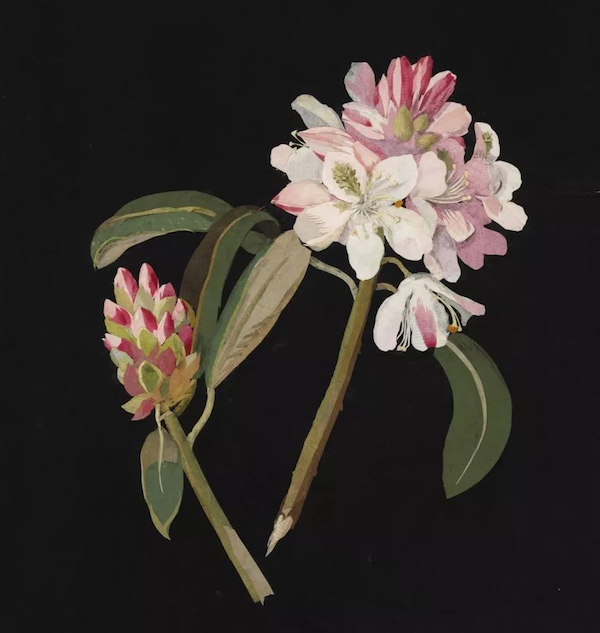 大英博物馆启蒙厅这些天正在展出两幅花卉剪纸作品。这两件作品为18世纪英国著名女博物画家玛丽·德拉尼(Mary Delany)最富盛名的被称为“花卉马赛克”的剪纸作品。值得一提的是,德拉尼是从72岁才开始尝试创作植物拼贴画,没想到就此“get”到了新技能,成为了拼贴画艺术的先行者和开拓者。其花卉作品入藏大英博物馆后成为最受欢迎的藏品之一。