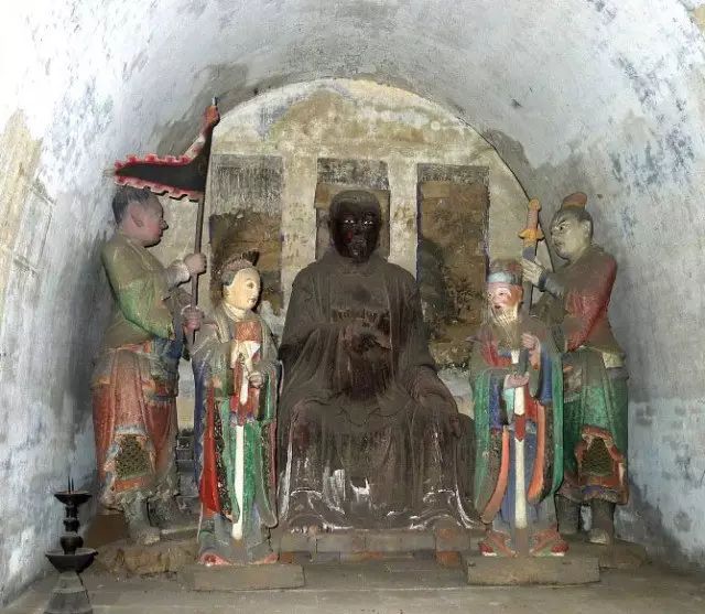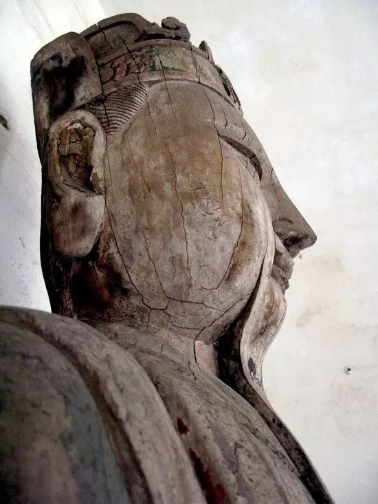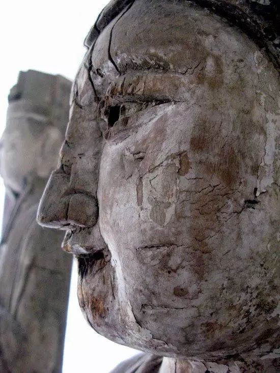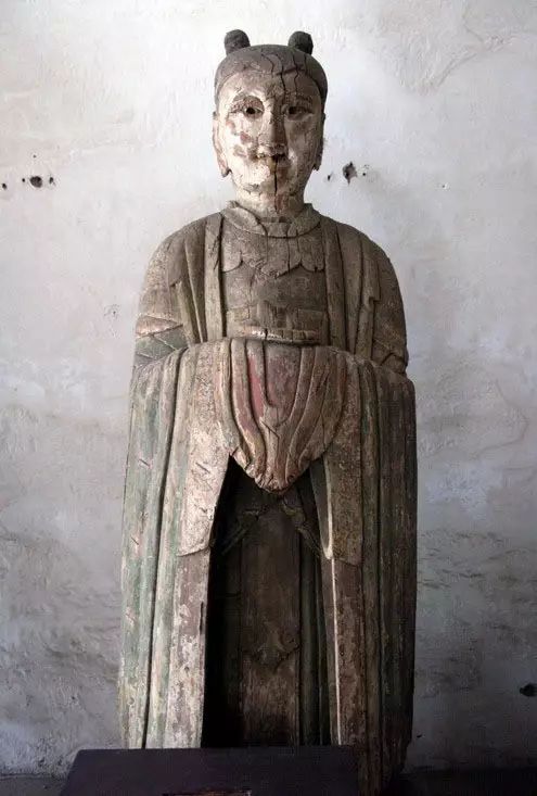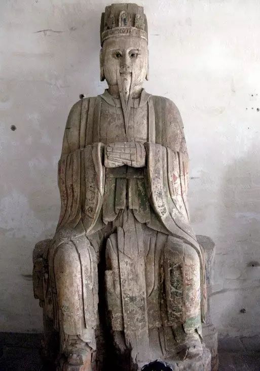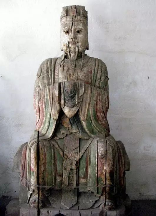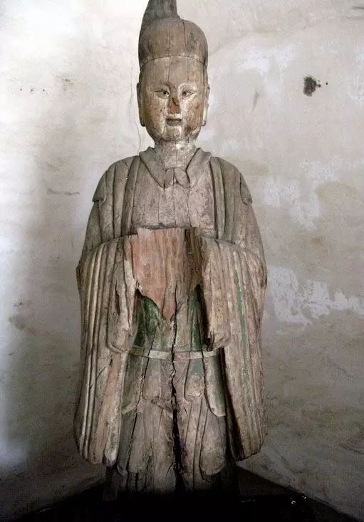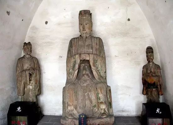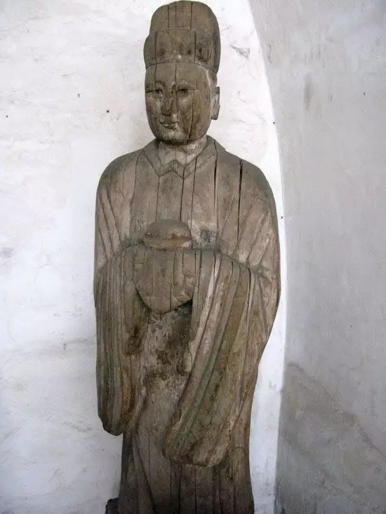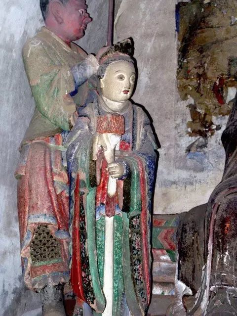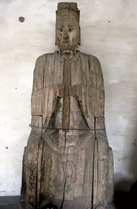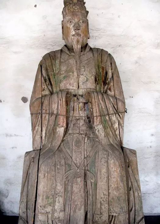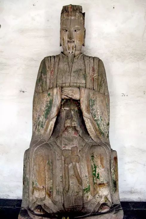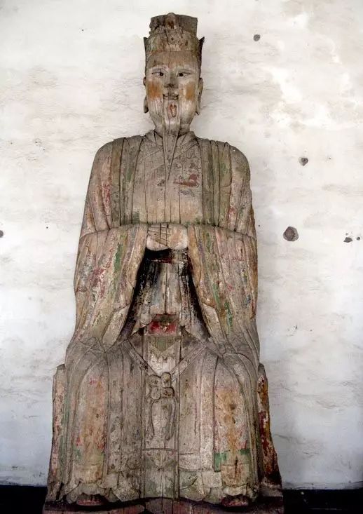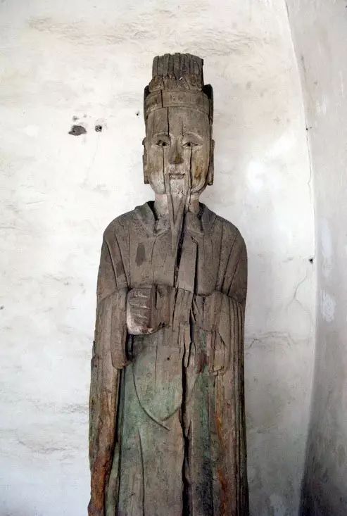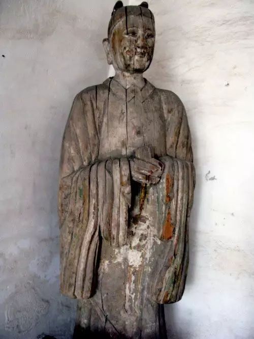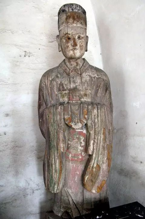 殿内陈列着二十余尊正襟端坐、面容慈祥、神情各异的木雕神像,都是以道教中的五岳山神及男女供养人为题材,系宋元作品,颜色、配饰至今仍保留宋元风格,极为珍贵。造像材料为柳木,采用立体圆雕手法雕刻而成。