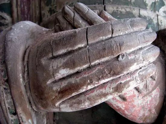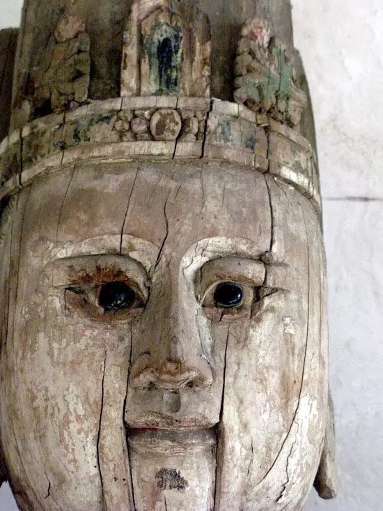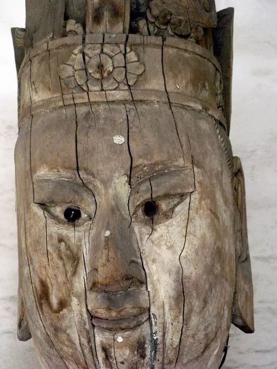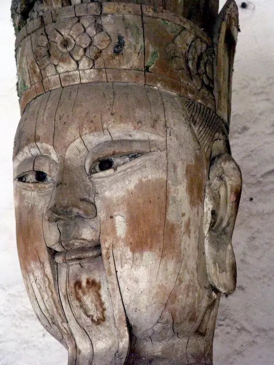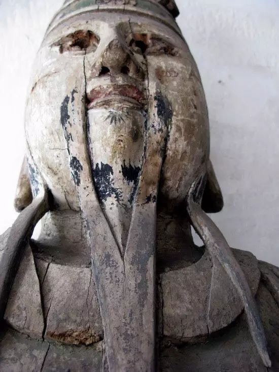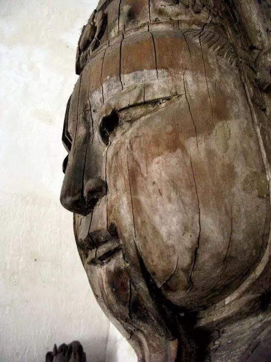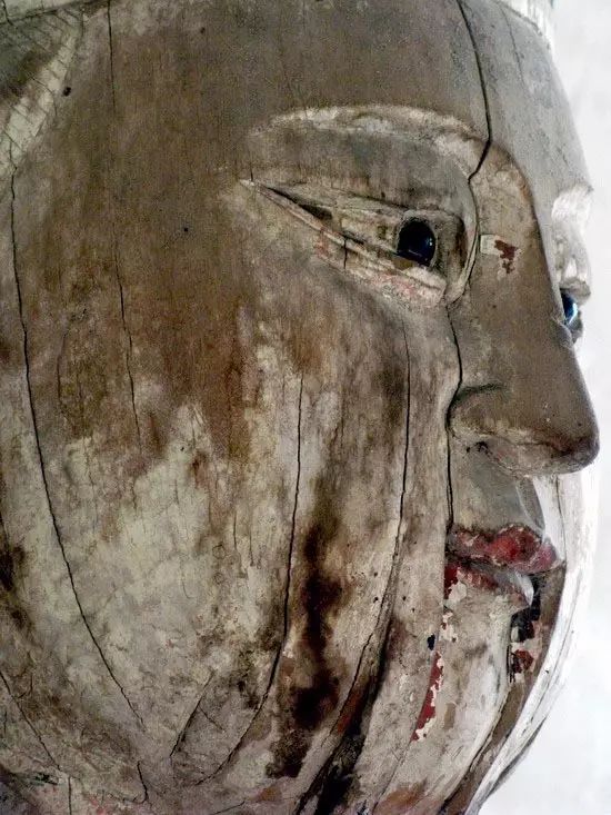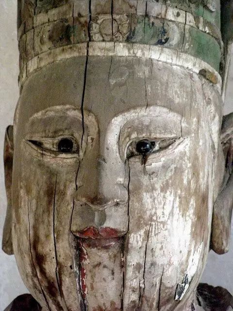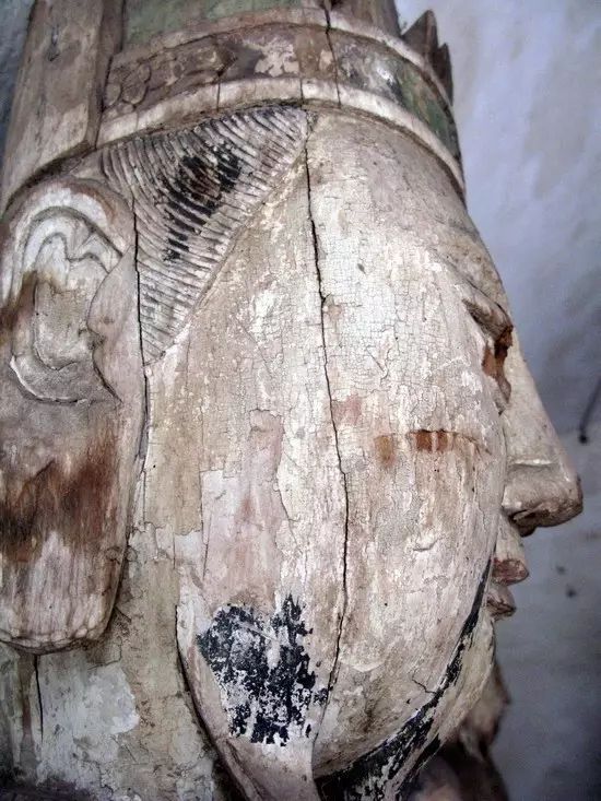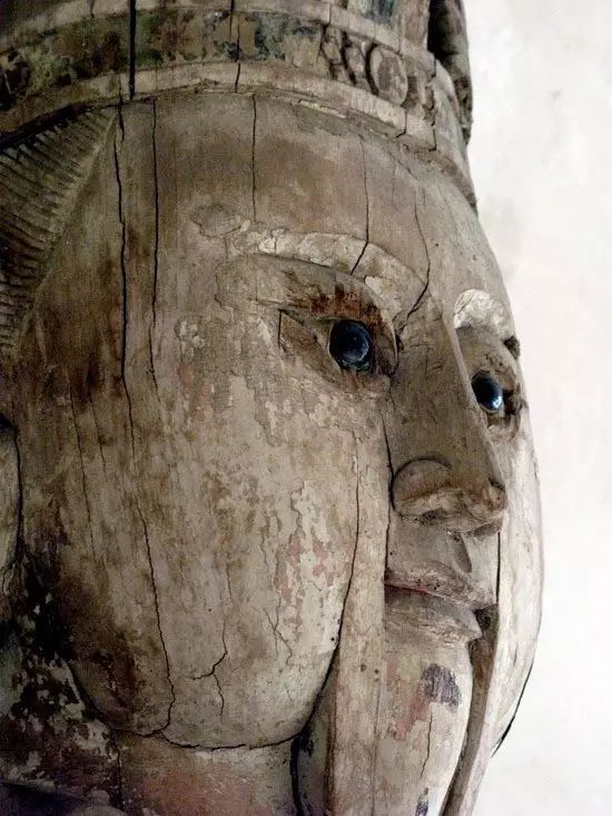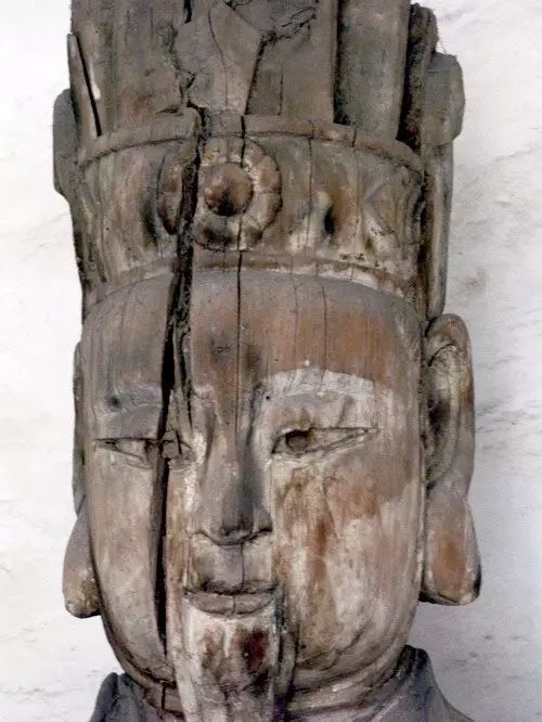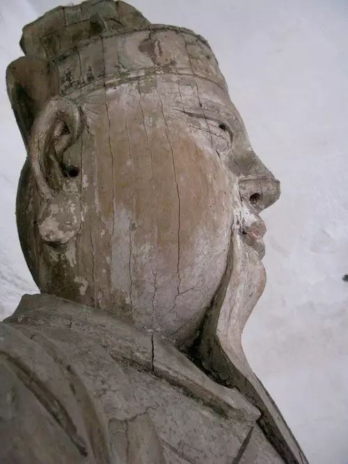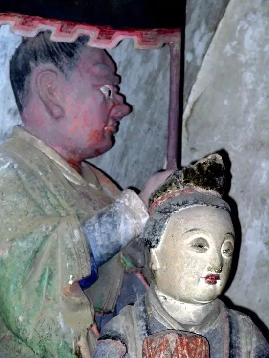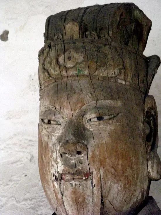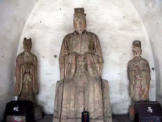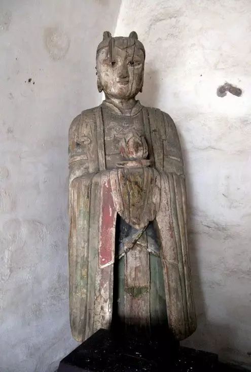 殿内陈列着二十余尊正襟端坐、面容慈祥、神情各异的木雕神像,都是以道教中的五岳山神及男女供养人为题材,系宋元作品,颜色、配饰至今仍保留宋元风格,极为珍贵。造像材料为柳木,采用立体圆雕手法雕刻而成。