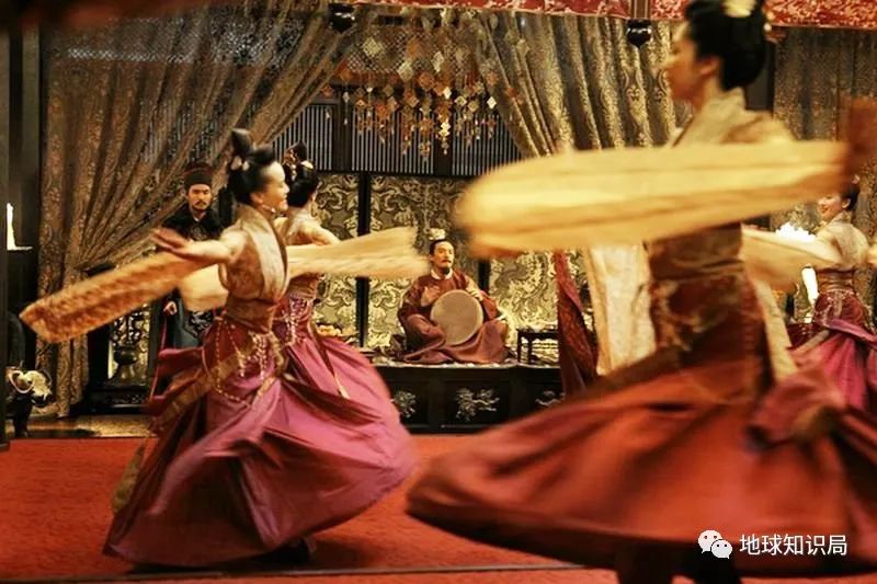 胡商们带来的,还有充满异域风情的音乐舞蹈。比如来自今天新疆境内的龟兹音乐,就在长安大行其道。乐师戴着黑色的丝绸头巾,穿着红色的丝绸长袍和红布裤子;舞者四人一组,穿着红皮袄、白裤子和黑皮靴,有吹有弹,有唱有跳,岂不快哉。