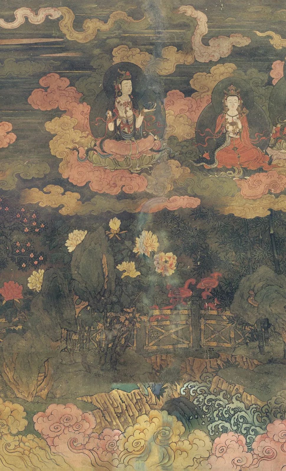 扇面墙背后绘有三铺,内容为《三大士》,分别为水月观音和文殊、普贤菩萨。