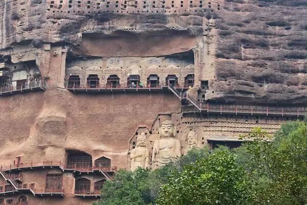 麦积山石窟,现存有221座洞窟、10632身泥塑石雕、1300余平方米壁画,以其精美的泥塑艺术闻名世界,被誉为东方雕塑艺术陈列馆。