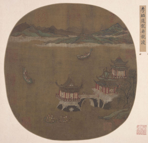 (传)唐李昭道,《龙舟竞渡图页》,绢本设色,北京故宫博物院藏