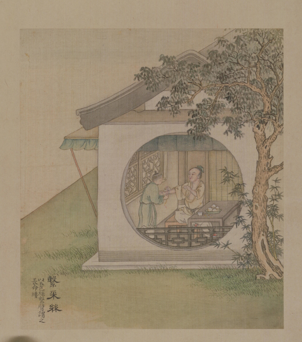 第四开名《养鸲鹆》,题:“取鸲鹆儿毛羽新成者去舌尖,养之皆善语。”第五开名《悬艾人》,题:“荆楚风俗以艾为人悬门户上,以禳毒气。”